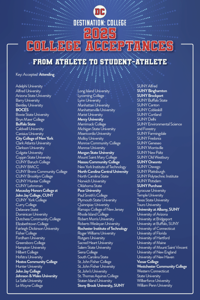 If you would like to join the DC family as a volunteer, please reach out to Executive Director Michele Roque at mroque@destinationcollegeny.org to be part of the fall programs !