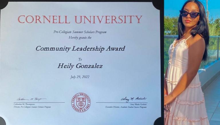 MV Steam Academy High School and 2022 Cooney Scholar, Heily Gonzalez, received the Community Leadership Award at Cornell University’s Pre-Collegiate Summer Scholar’s Program. Congratulations Heily!